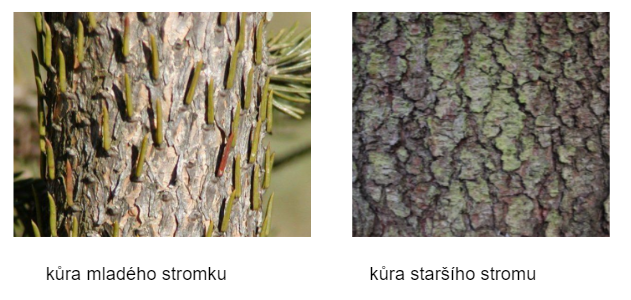 Smrk má drsnou, šupinovitou kůru, tenčí než modřín. Jehličí vyrůstá jednotlivě na vystouplých listových polštářích, proto jsou po opadání větvičky na omak drsné.