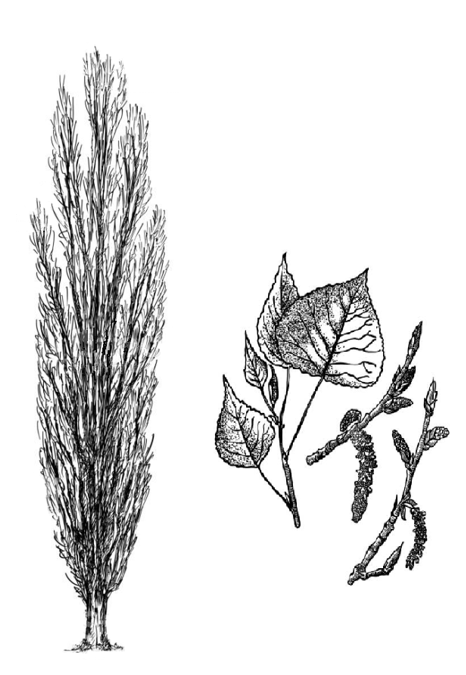 Topol černý je vysoký rychle rostoucí strom charakteristického tvaru.