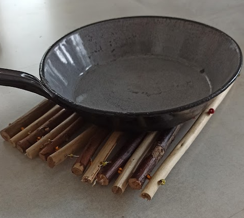 Na podložku se skvěle hodí odřezky vrbových prutů z výroby lenošky nebo postele.