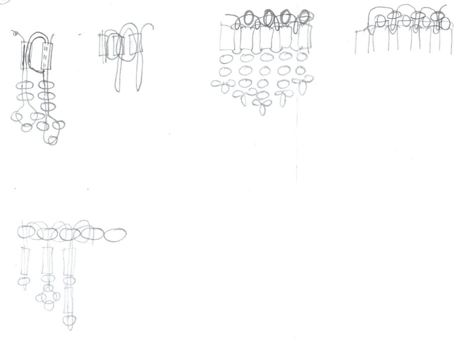 Nyní navlékneme trubičku číslo 2, vrátíme se k trubičce číslo 1, provlékneme ji vedle přívěšku odzdola nahoru, pak znovu provlékneme trubičkou číslo 2 odshora dolů a vytvoříme další přívěšek. Přívěšky se směrem ke středu náušnice mohou prodlužovat, lze na ně použít také trubičky, záleží, jak to umělec cítí. (obrázek 2)