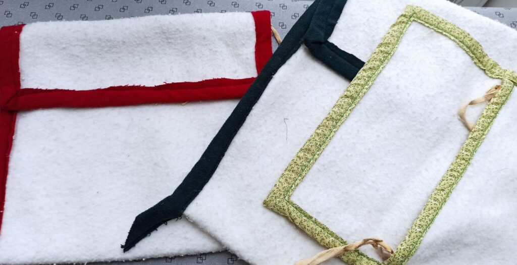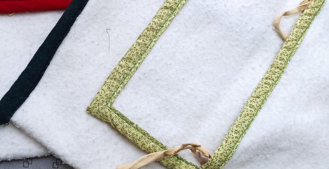 Do švů vložíme poutka na šňůrky k přivázání na lining.