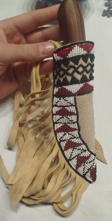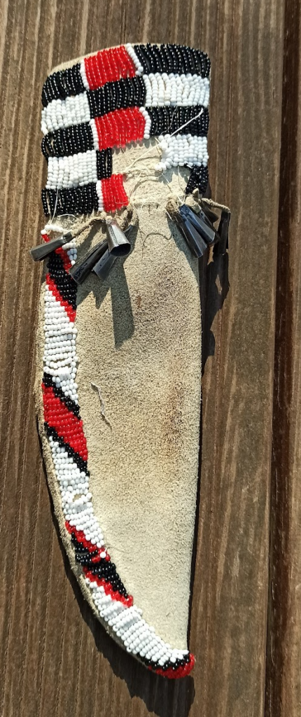 Chceme -li k obalu připevňovat rolničky, teď je vhodná doba k provlečení třásní. Na mém opelichaném pouzdru jsou krásně vidět zářezy, kudy vedl proužek kůže, na jehož koncích visely rolničky.