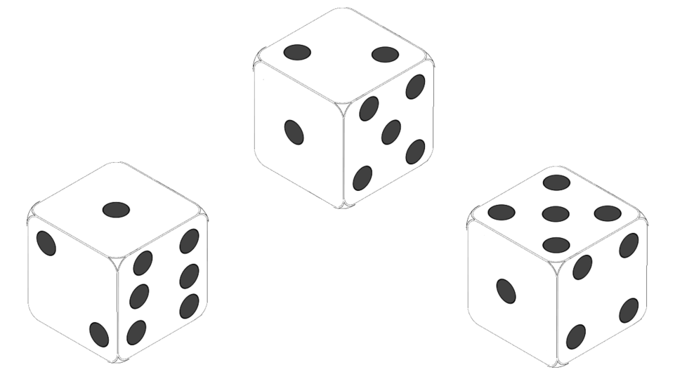 2. Klasická kostka je zpravidla uspořádána tak, že dvě čísla naproti sobě dávají v součtu číslo sedm. Tato podivná kostka ovšem toto pravidlo nectí. její autor toto pravidlo zřejmě neznal, a proto umístil hodnoty zcela nahodile. Na obrázku je jedna a tatáž kostka, jen se na ni díváte z různých pohledů (je vždy pootočená). Dokážete určit, jaké hodnoty se nachází na kostce na protilehlých stranách? (Tedy, jaké číslo je proti jedničce, proti dvojce a z viditelných třeba proti pětce)