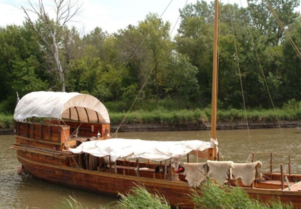 Expedice disponuje člunem kýlového typu, který je na místních řekách běžně užívaný pro přepravu nákladu. Díky svému malému ponoru je schopen plout podél břehu, kde je mírnější proud. Zde je na místě zdůraznit, že expedice započne plavbou proti proudu Missouri.